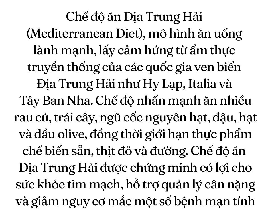 “Nghiên cứu cho thấy chế độ ăn Địa Trung Hải có thể có lợi trong duy trì trí nhớ và kỹ năng tư duy.”